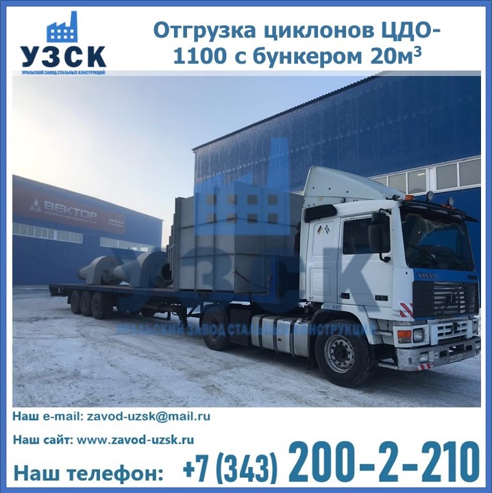 Циклоны ЦДО-1100 с бункером на 20 кубов были отгружены в декабре 2018 года в г. Новосибирск Архангельск.