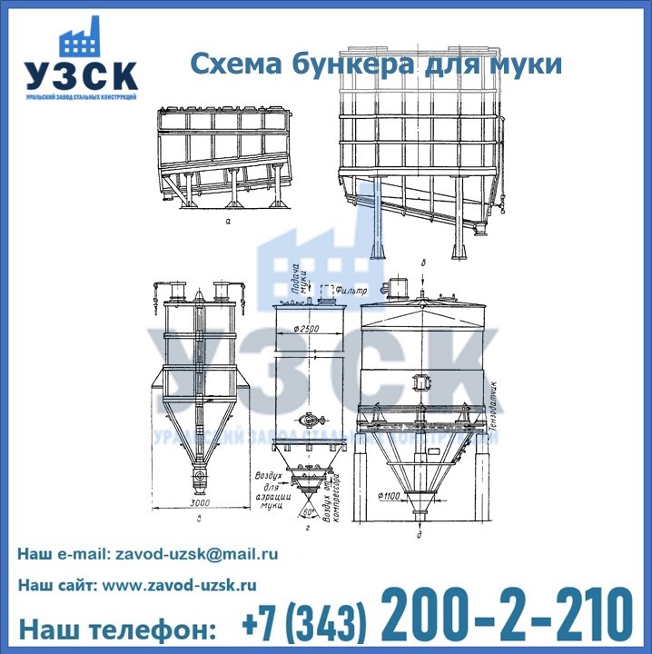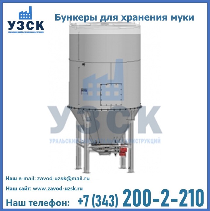 Завод «УЗСК» в Архангельске проектирует, производит и поставляет целевое оборудование, в том числе, бункеры для хранения муки и прочих сыпучих материалов.