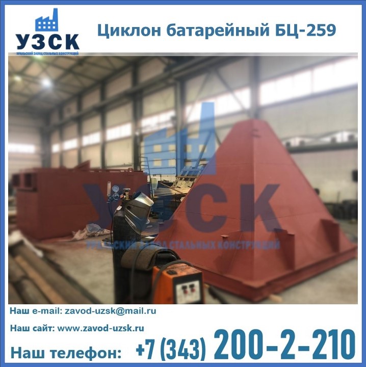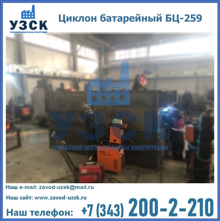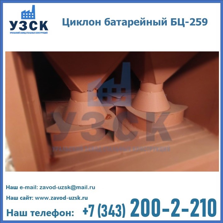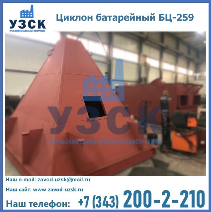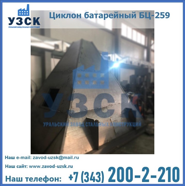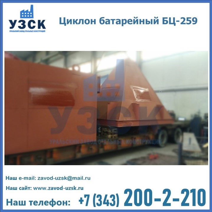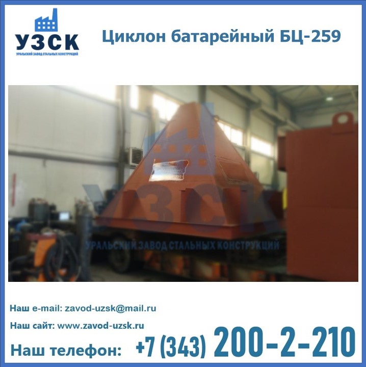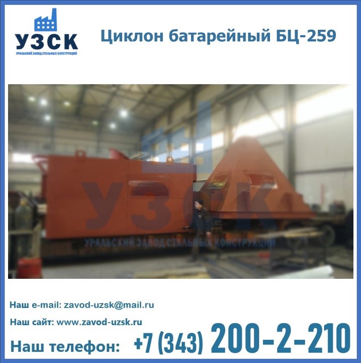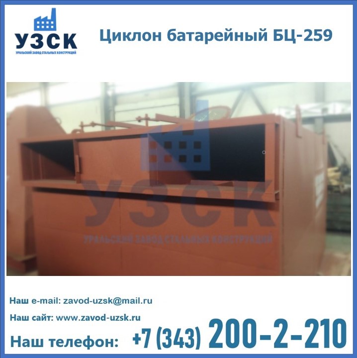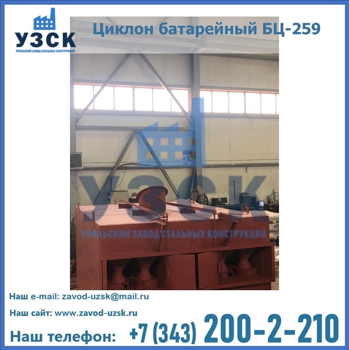 Приобрести качественное оборудование, в том числе, циклоны БЦ-259, можно в компании УЗСК в Архангельске. Мы предлагаем долговечную и надежную продукцию по приемлемой цене. Заказать и купить циклоны или другие изделия высокого качества можно через сайт Уральского Завода Стальных Конструкций, или позвонив по указанному в разделе «Контакты» телефону.