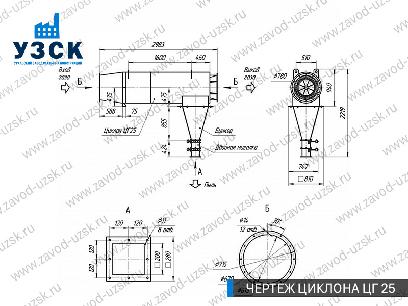 Монтаж циклона-искрогасителя ЦГ должен осуществляться непосредственно к горизонтальному вентиляционному каналу на входе в систему фильтрации и аспирации. Заказать изготовление по индивидуальному техзаданию или купить готовый циклон-искрогаситель ЦГ на заводе УЗСК в Архангельске можно, оставив заявку прямо на сайте или позвонив по указанному телефону, уточнив все детали касательно продажи оборудования.