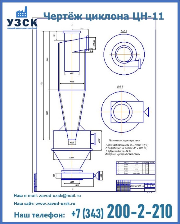 Циклоны ЦН 11 можно купить в УЗСК в Архангельске. Мы предлагаем самые выгодные условия и оптимальную стоимость для приобретения данного оборудования. Сделать заказ очень просто, требуется только оформить заявку на нашем сайте или позвонить по указанному телефону. УЗСК также занимается реализацией и производственным выпуском циклонов и прочих изделий под заказ, цена на нашу продукцию формируется исходя из индивидуальных требований заказчика и специфики производства. Мы производим циклоны из высококачественной нержавеющей стали (толщина 3-4 мм), при необходимости, толщина конечного изделия может быть увеличена.