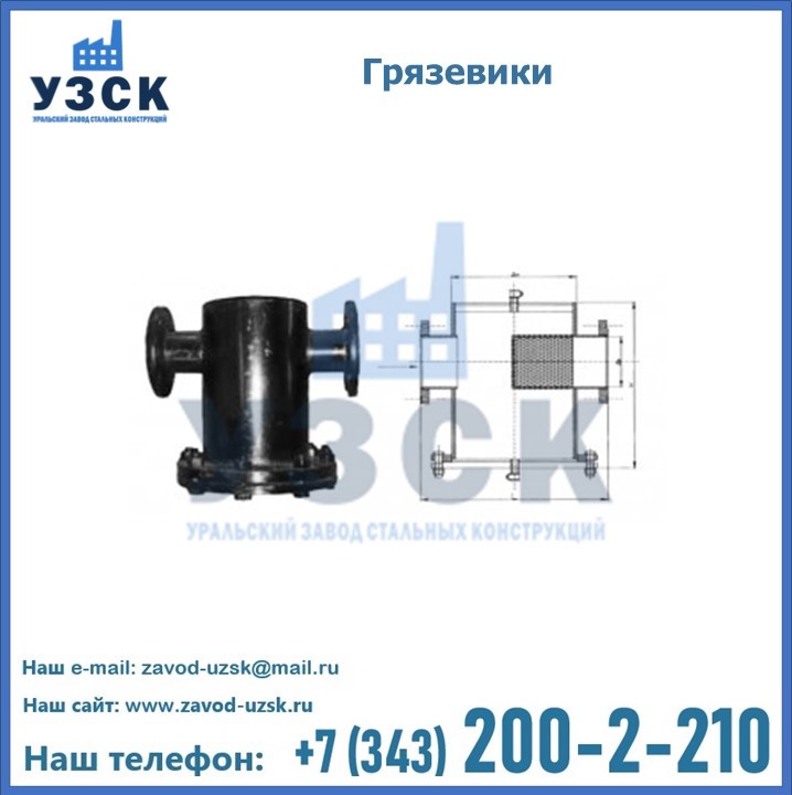 Уральский Завод Стальных Конструкций занимается производством и реализацией грязевиков в городе Архангельск, в наличии устройства горизонтального и вертикального типа, соответствующие всем требованиям и стандартам, в том числе условиям «Правил устройства и безопасной эксплуатации».