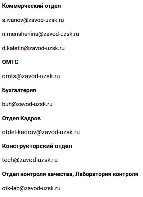 EMAIL : arxangelsk@zavod-uzsk.ru