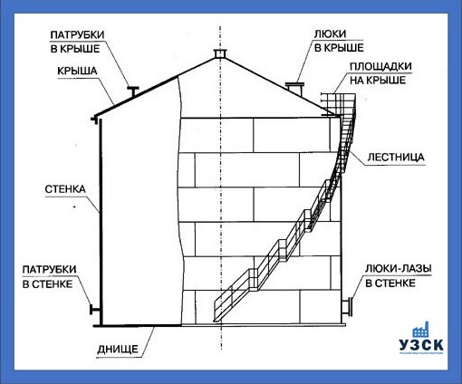 Конструкция резервуара 500 м3 состоит из: